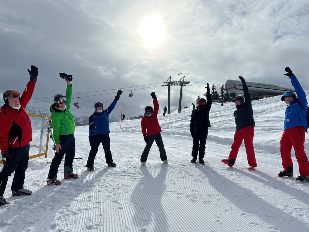 Vor Ort entscheiden wir in Ausnahmefällen und je nach Gruppenkonstellation, ob wir einen Kurs in Kooperation mit der örtlichen Skischule durchführen. Die entstehenden Mehrkosten werden in diesem Fall von uns übernommen, jedoch sind dann auch externe Skischulteilnehmer*innen im Kurs.